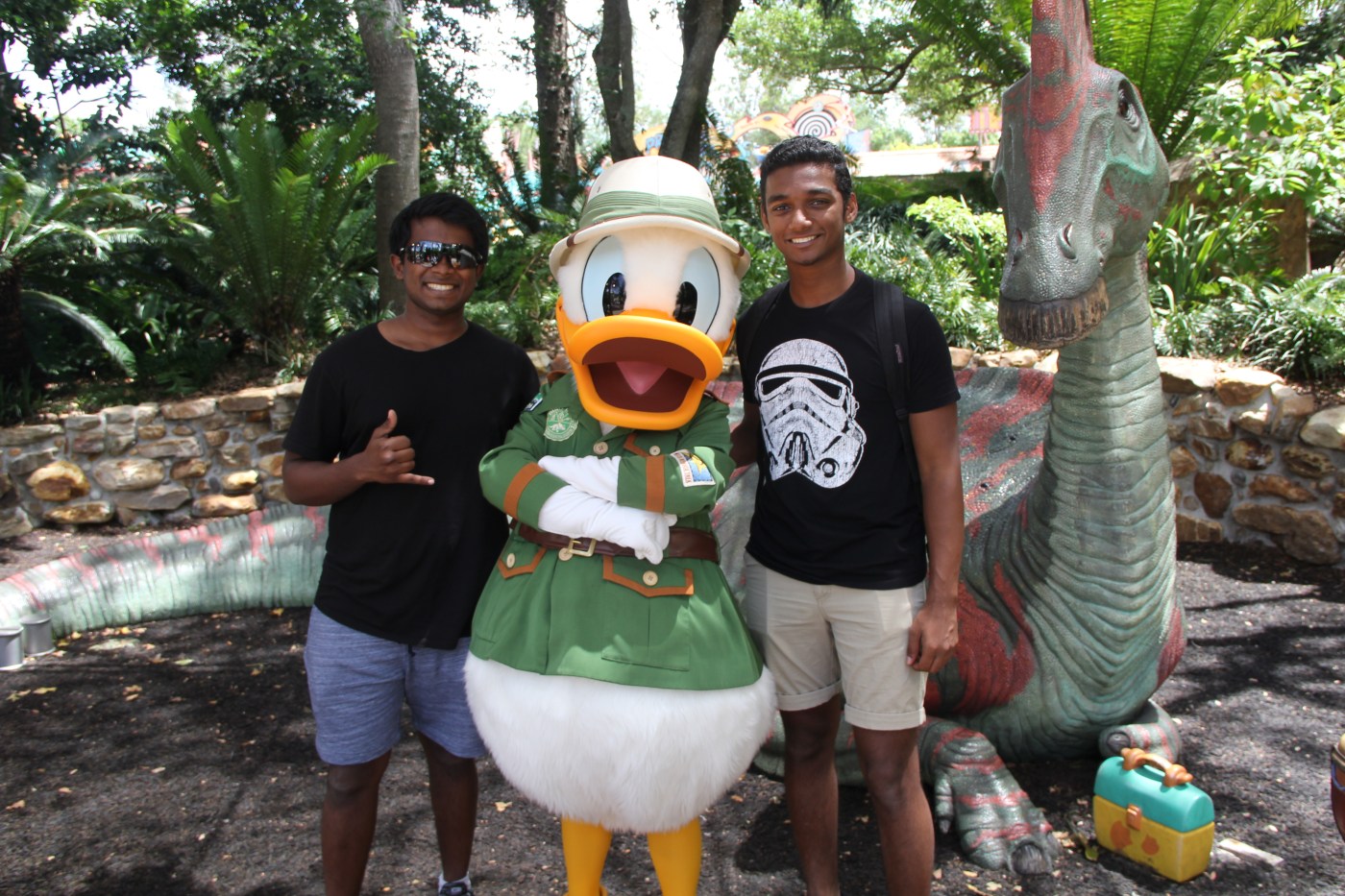 Early on Monday the 17th of April, we headed to Disney’s Animal Kingdom! This was my first time ever being in a Disney theme-park, something that i had wanted to do since i was 7, so i was super excited. It was a pretty efficient line to get in and we immediately headed for the Safari within the park. Animal Kingdom was both a theme park and a zoo, which was awesome as there were animals just roaming about (not dangerous ones of course). The safari brought us close to a wide range of animals they had at the zoo such as Rhinos, Lions, Gazelles, Hippos and many more. I’ve always loved animals so it was pretty awesome to see them up close. For the next couple of hours after the safari we explored the park, did some exhilarating rides (like the Everest expedition), went on some trails where animals were in their enclosures. I really appreciated the fact that a company like Disney had taken an interest in the conservation effort. We met a couple of characters as well (which made me excited like the many 5 year olds that were there HAHA). We met Baloo, King Louie , Tarzan, Donald Duck and Flik . One of the major highlights of the day was the shows we attended . One was the Festival of the Lion King and the other was the Finding Nemo Musical. The Nemo musical was great but the Lion King one was incredible. I actually had chills when i heard the performers sing the Lion King songs and the characters like Timon, Pumba and Simba appear. It was different from Broadway but still absolutely spectacular. We ended our day early in the park as we had an early rise for the Kennedy Space Center the next days o we headed back at about 6.
