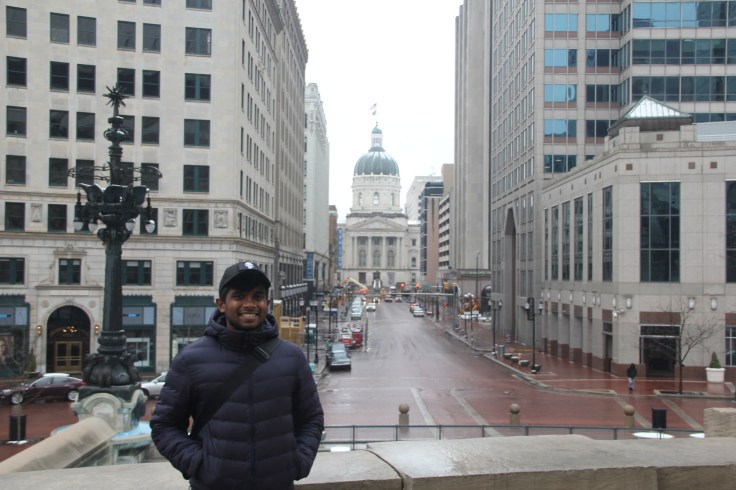 While we had seen a fair amount of rain throughout the trip, snow was never present due to us mostly being in the south. However, as we drove further into the city the snowfall became gradually heavier! Thankfully I was not on the wheel as driving in snow required far more experience but it was quite a sight to see a snow covered highway! Furthermore the city was literally being pounded with snow by time we got to our first stop in the state capitol (Another chance to visit another capitol!). The interior design of the building was unbelievable. It felt as though we had stepped into a castle not a state capitol. It was not particularly travel season in Indiana so the elderly guides at the desk were rather excited to see us wander in. The got even more excited when they found out that we were from nations that were a great distance away (Spain, Finland and Singapore). The gentleman gave us a personal tour, letting us into both chambers of the house and senate (that was closed at the time). He even let us walk inside house of representatives (usually a closed off area that we were only allowed to look at). After seeing the sights of the capitol we just wandered around till closing (at 2pm that day) to soak in the beauty of this incredible building. The next spot that we visited was the Soldiers & Sailors Monument. A massive monument in the middle of the city that allowed for an elevated view of the entire city! Indianapolis caked in snow was quite a sight. Due to the coronavirus pandemic and the lack of a travel season a number of locations were not open to the public. However we were happy to spend our last evening as a group at our Airbnb, having dinner and just hanging out.